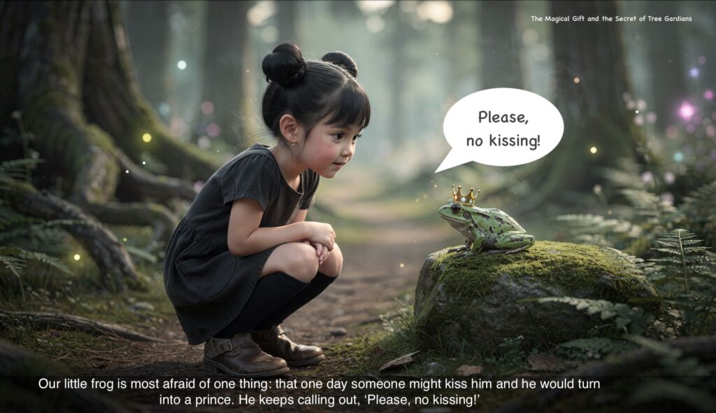 Although, to be fair, he’s not all that mysterious. He wears a crown on his head and is terrified of being kissed—because that might turn him into a prince.